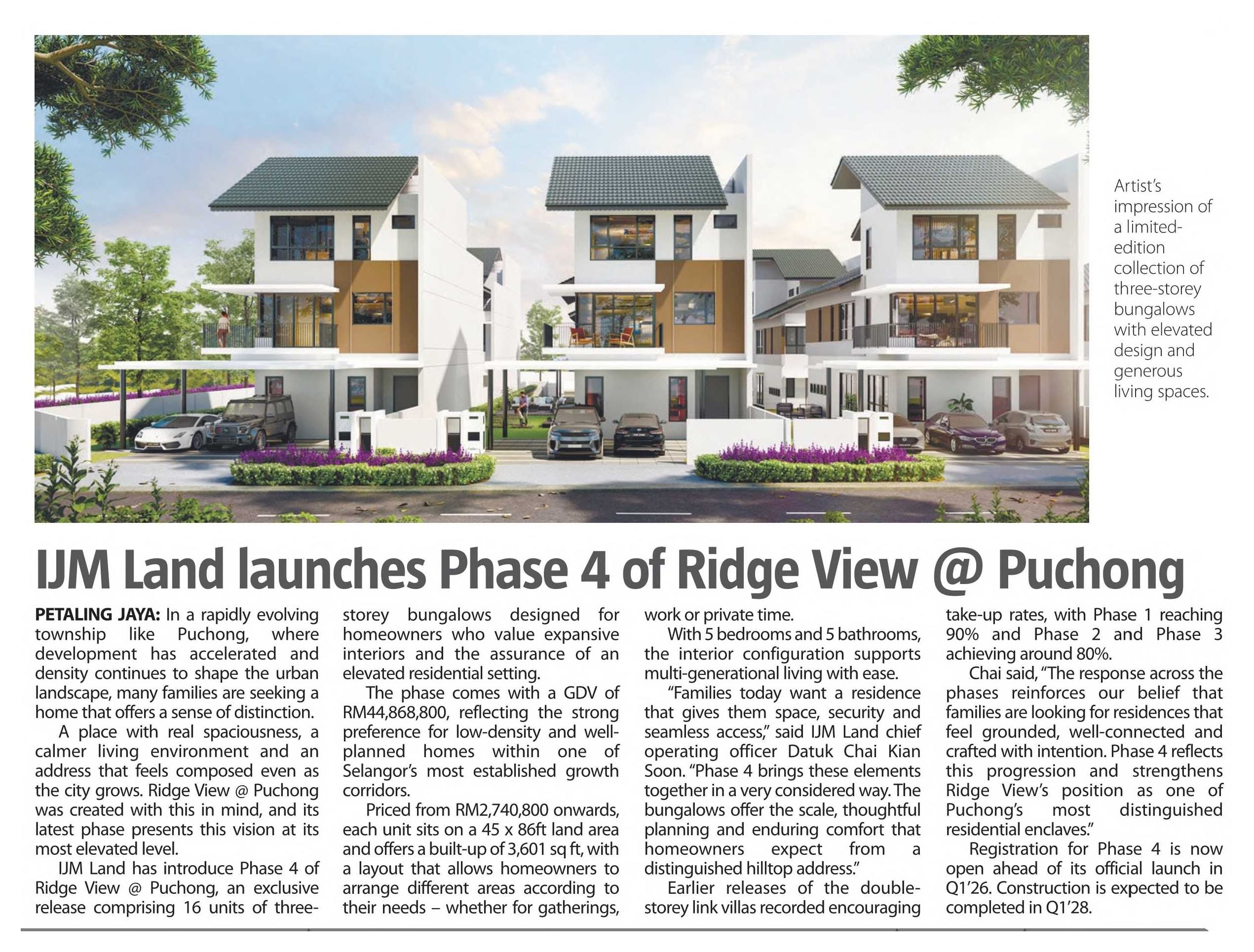 IJM Land launches Phase 4 of Ridge View @ Puchong